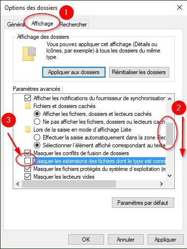 Masquer les extensions